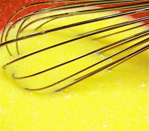 Once the mixture is melted, combine with eggs, vanilla, and milk.