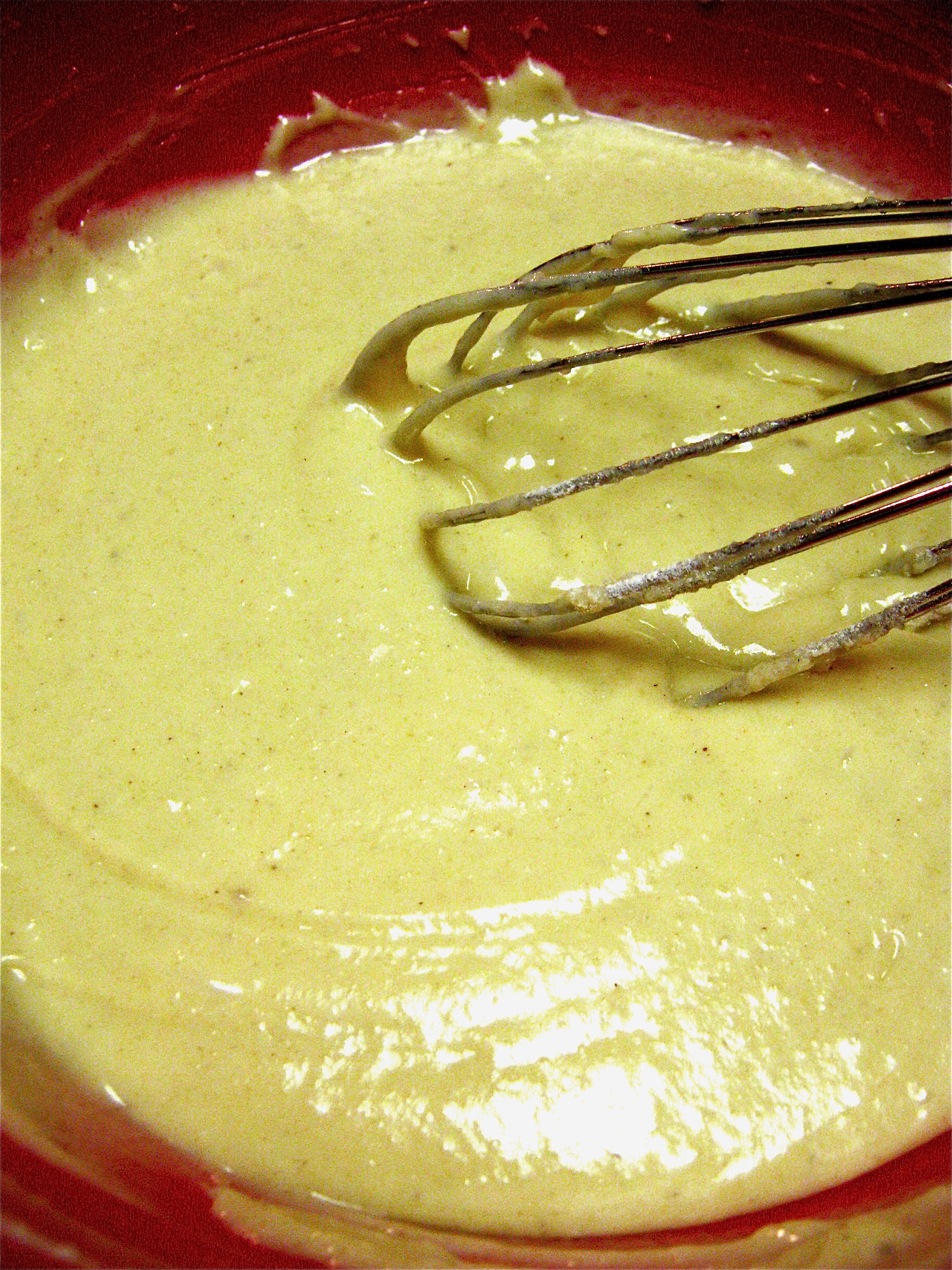 Whisk together flour, sugar, salt, and spices. Add dry ingredients to the egg mixture. Batter should have a slightly sticky/taffy-ish quality when you spoon it into the liners.