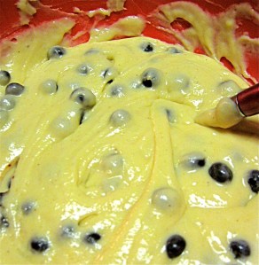 Carefully fold in blueberries.