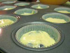 Fill muffin cups three-quarters full and set them in the oven for 15 minutes (a minute or two longer if you like them browned on top.)