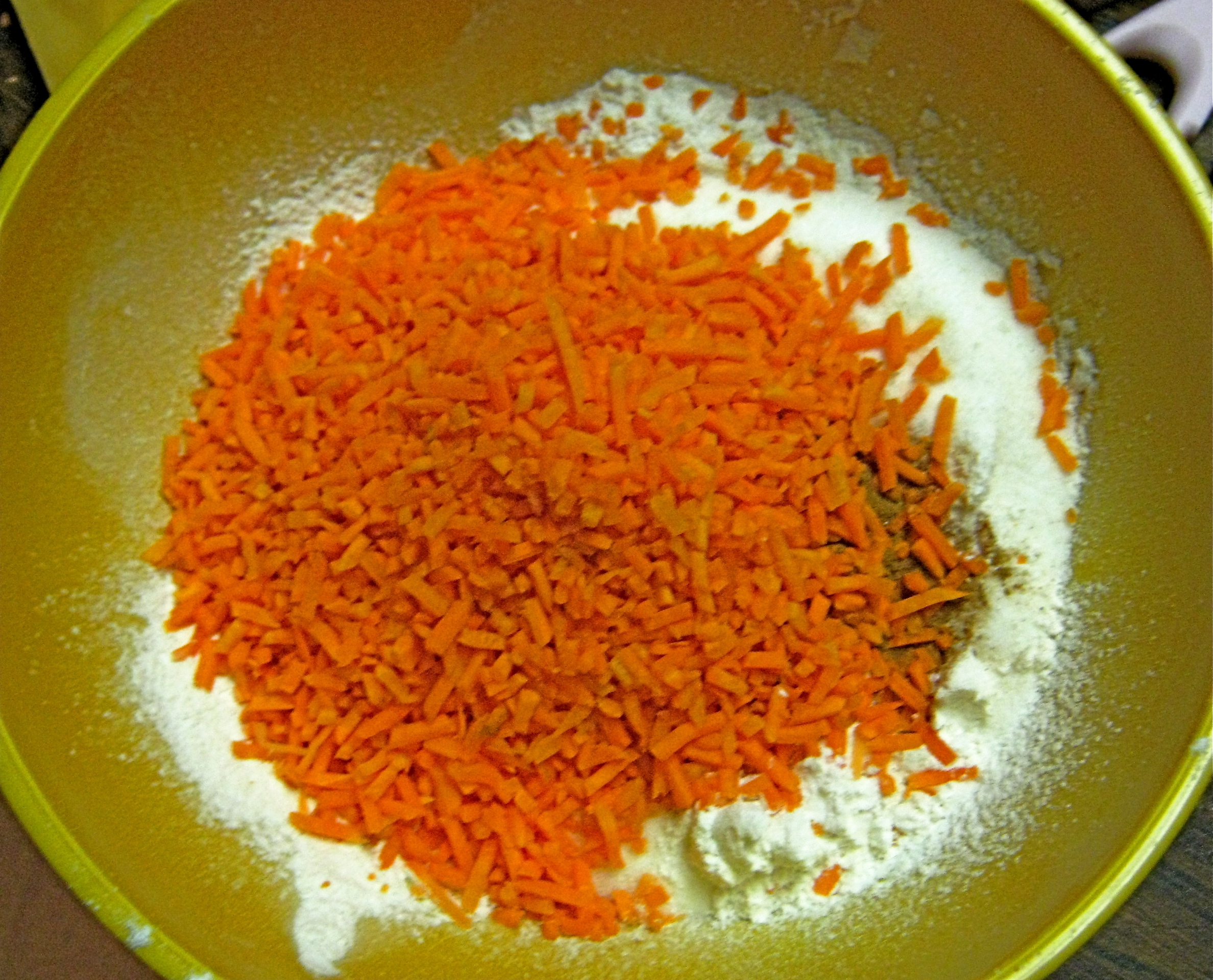 Combine dry ingredients, then stir in oil and carrots.