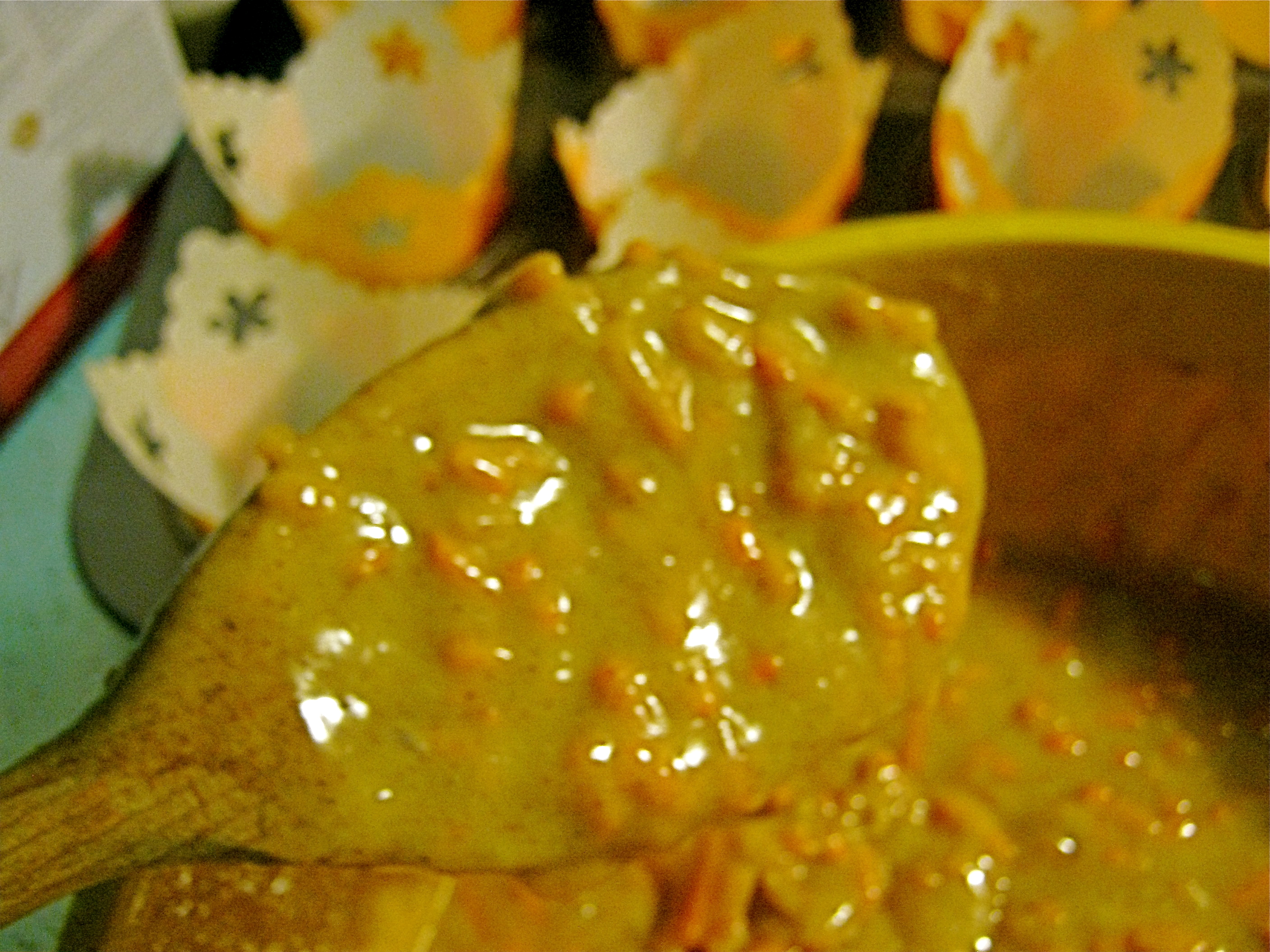 I let the white frosting sit for a moment before adding the orange and green.