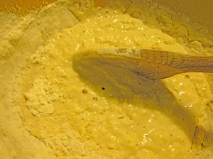 You can add water and flour as needed while mixing; I ended up adding quite a bit of water.