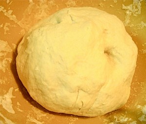 Knead well, until the dough is springy when you poke it. Be patient when kneading the dough: a poorly-kneaded dough will be difficult to work with later.