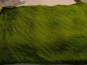 Take your greens out of the bowl of water, and lay between two paper towels, to soak up any excess water. Chop finely.