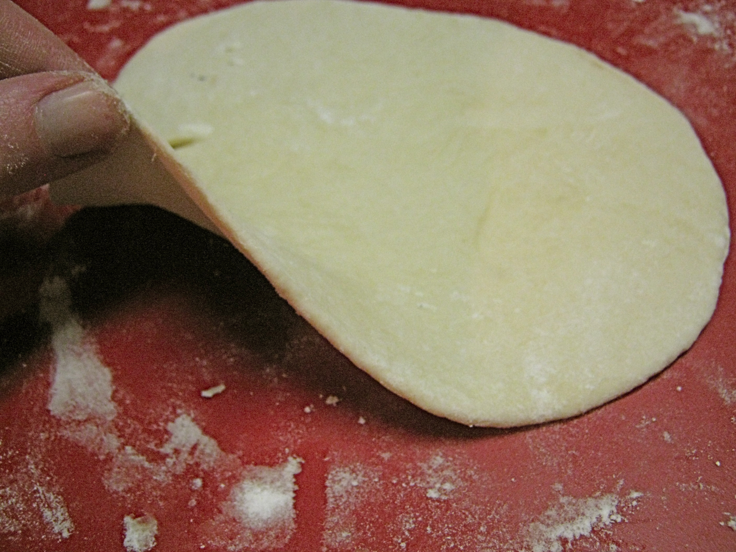 Roll your dough into balls and cover with a damp cloth. Let them rise for 20 minutes, or until the filling it ready. At this point, pre-heat your oven to 420 degrees.