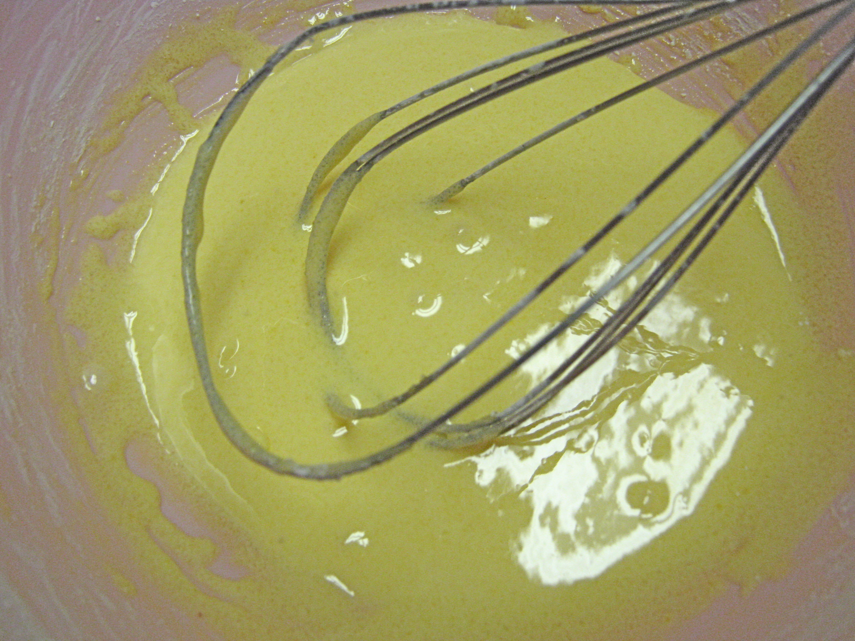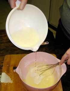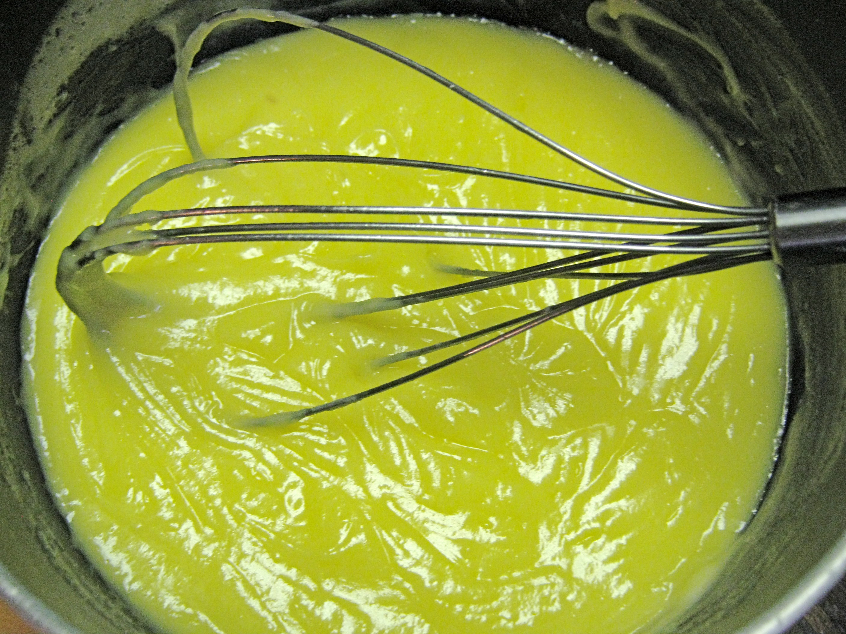 Add the cornstarch and whisk the mixture is pale yellow and thick.
