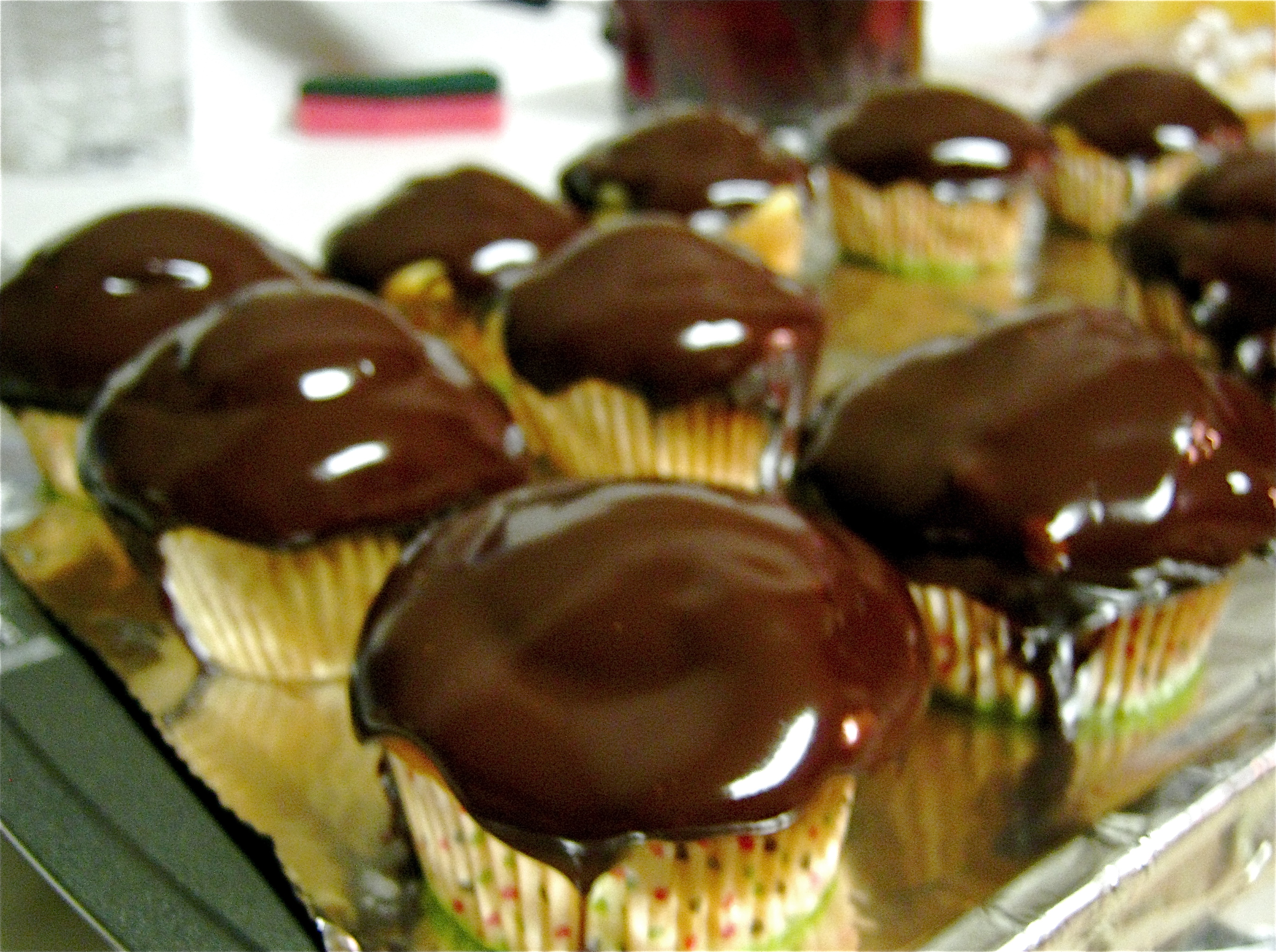 However, I no longer have an eight-year-old’s stamina when it comes to sweets, so I decided to make adult-friendly mini-versions. I found this awesome recipe on Foodgawker, and although it is labor-intensive, the end product is absolutely worth it! The cupcakes looked beautiful, tasted awesome, and made a much bigger impression than an ordinary cake would have!